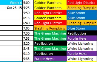 Here’s your matchups for this coming week (Week 6 > Oct 25th)