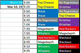 PLEASE USE THIS SCHEDULE BELOW FOR MARCH 10th games. There is (was?) an issue with the games listed on the main page.