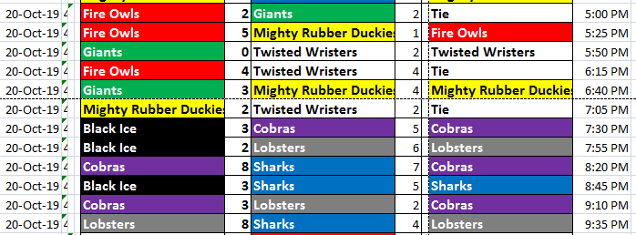 With this weeks playoffs starting, we are finalizing game times and will post later in the day. Thank you for your patience.