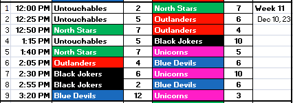 Results, Standings and Stats through Week 11 (Dec 10th)